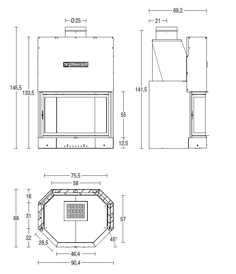 Каминная топка Piazzetta MA 270 SL (призма)