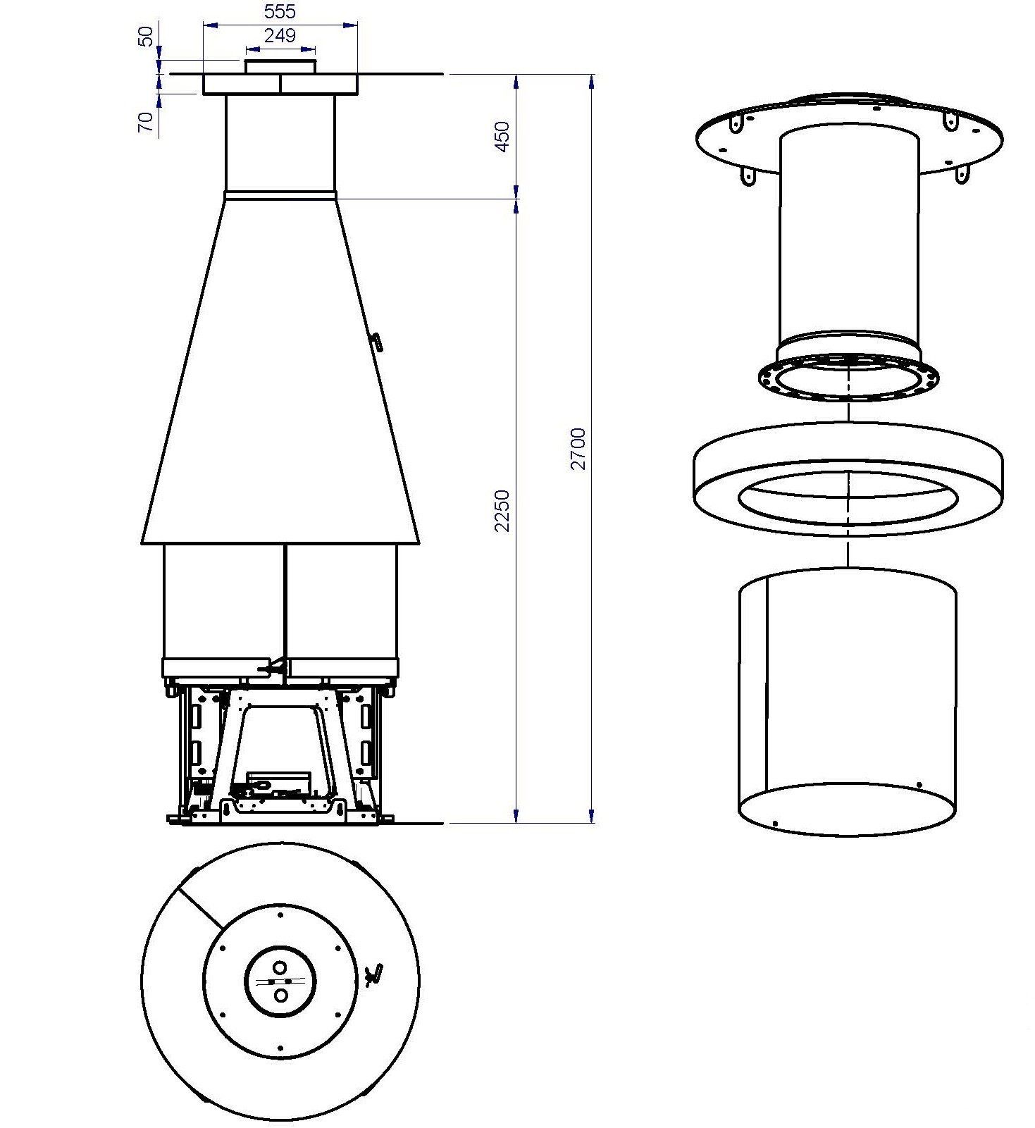 Островной камин Piazzetta M360 с цилиндрическим кожухом - отдельно стоящая каминная топка с круговым обзором пламени. Выполнена из высококачественной стали, выдерживающей температуру до 1400 гр.