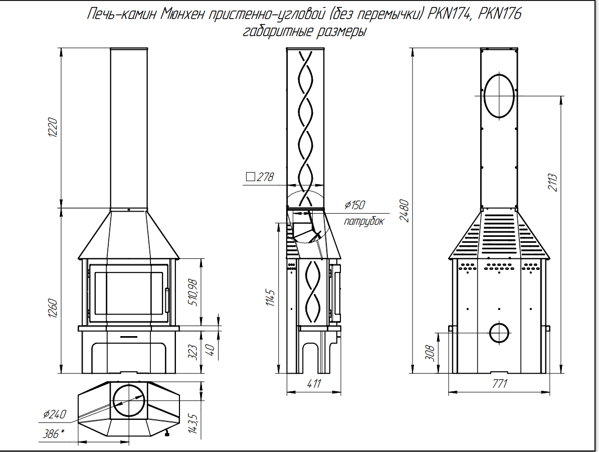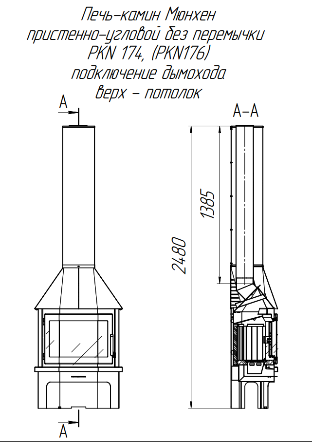 Подключение дымохода - верхнее. На высоте 2113 от пола, дымоход может быть выведен в стену.