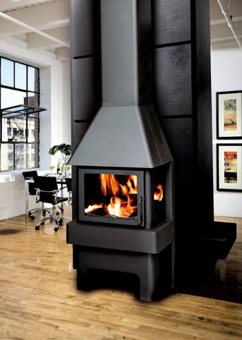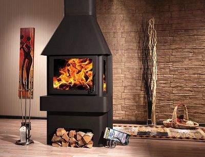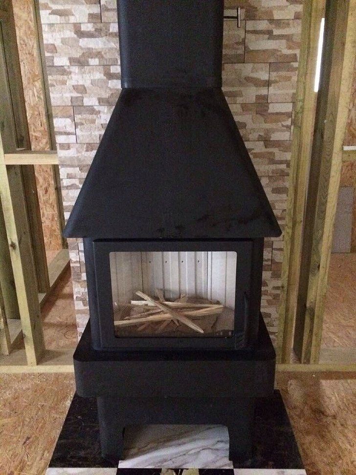 Мощность камина 12 КВт, что позволяет отопить помещение до 100 кв. м.
