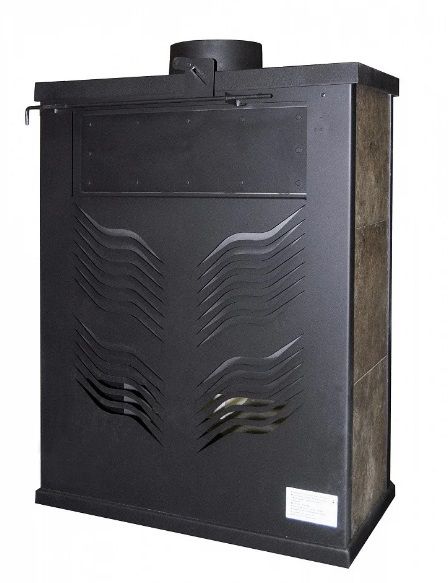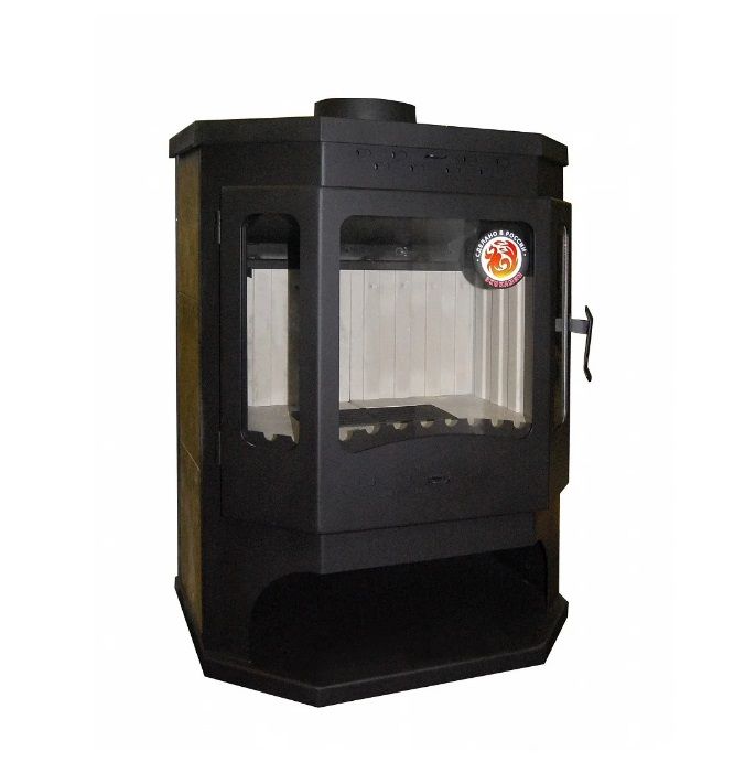 Печь изготовлена из высококачественной стали и окрашена термостойкой краской импортного производства. Боковые стенки облицованы керамическими вставками, цвет которых может отличаться от изображения на фото. Большая топка двойного сгорания футерована литьевым шамотом светлого цвета и оборудована чугунным колосником, под которым расположен вместительный зольный ящик для золы и сажи. Длина поленьев, которые свободно размещаются в топке, не менее 50 см.